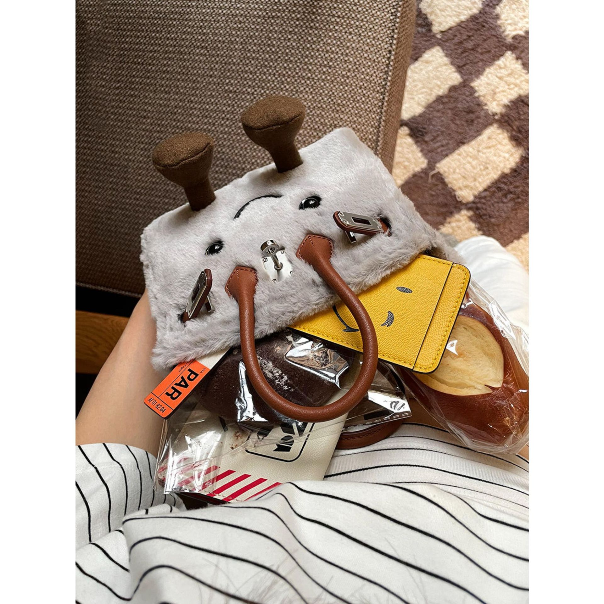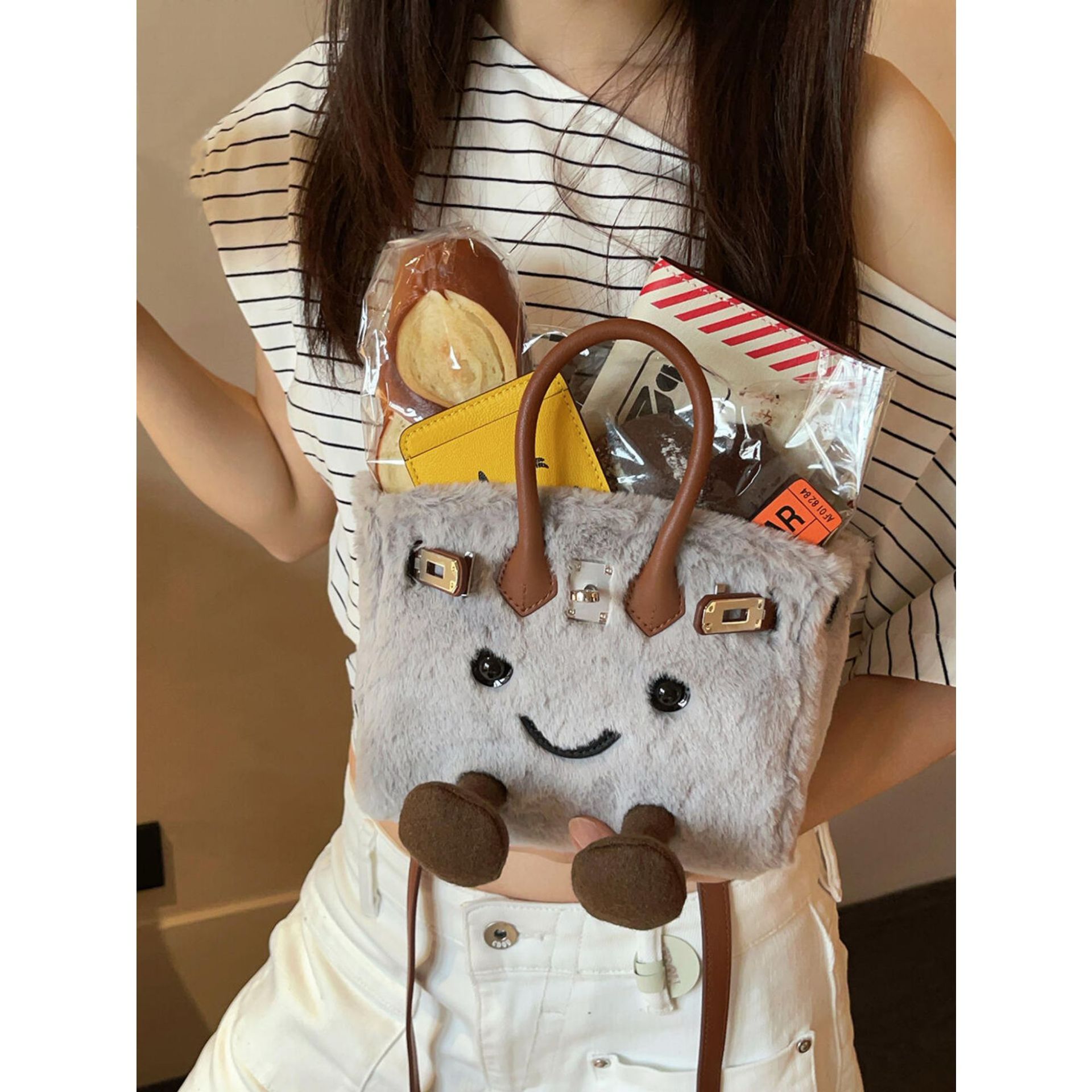 Cute cartoon smiling plush crossbody bag